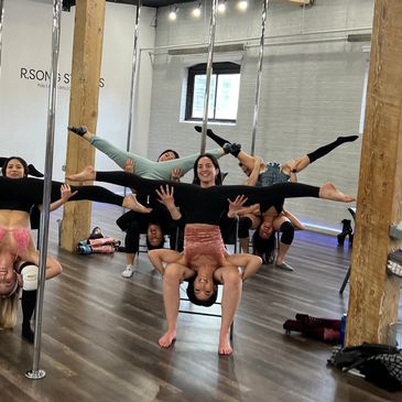 Through a mix of bodyweight exercises, pole-specific drills, and creative movement challenges, you’ll sweat, laugh, and get stronger together. Every class focuses on functional strength and mobility, helping you unlock new skills and move with confidence on and off the pole.